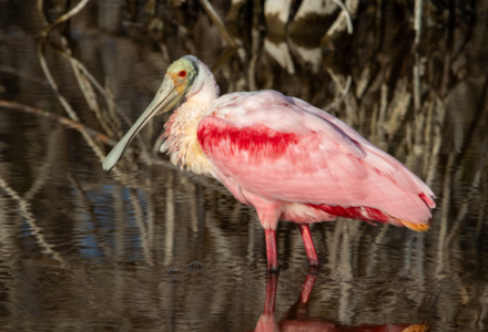 The J.N. “Ding” Darling National Wildlife Refuge reported that roseate spoonbills are not born with their bubblegum bearing. When they first emerge from their whitish to pale green eggs with brown spots, the hatchlings are covered in a soft, white, feathery down. A spoonbill's diet consists ...