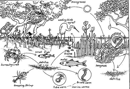 Based on the Sanibel Land Development Code, the vegetation requirements for the city of Sanibel identifies mangroves as “vital components of the estuary” providing multiple benefits to people, fish and wildlife, as well as creating a habitat for over 80 percent of the fish and shellfish species in Southwest Florida. Mangroves benefit communities through their ability to block wind and wave energy, stabilize soils and improve water quality through uptake of nutrients. Moreover, they provide roosting and nesting sites for many wading birds and seabirds.