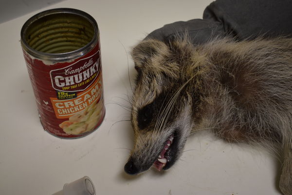 The male raccoon had gotten its head stuck in a soup can, officials reported.