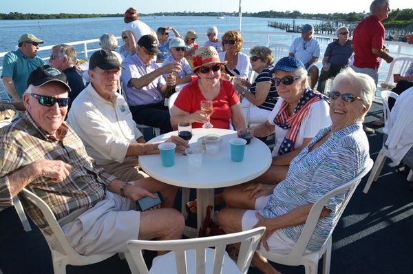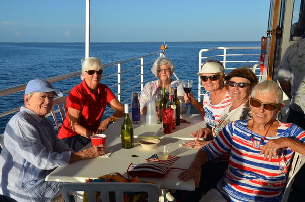 A full boat of Sanibel Catholic women and men celebrated Veterans Day with their annual Red, White, & Blue Cruise aboard the Lady Chadwick. Everyone enjoyed fellowship with friends and a perfect sunset, while raising over $600 for Catholic charities. One hundred percent of the money raised goes to the beneficiaries of their fundraising events. Recent proceeds have been used to support the Immokalee DACA programs and the Marion Mission in Africa.