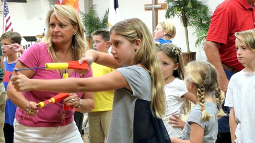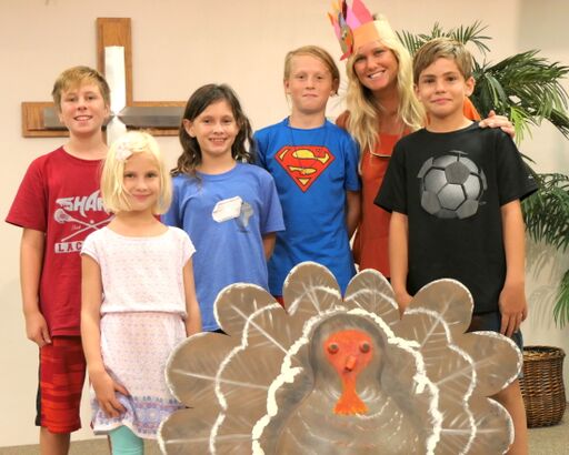 Children took part in Tom Turkey Night at Logos on Nov. 14 at Sanibel Community Church. Tom the Turkey was the theme as the youth enjoyed a turkey dinner, with all of the trimmings, and even pumpkin pie for desert. After dinner, they participated in the annual Turkey Shoot. This year’s winner was Jayden Alonso when his finger dart hit the turkey heart bull’s-eye. Open to pre-kindergarteners to fifth-graders, Logos meets on Wednesdays from 3:30 to 6:45 p.m. at the church, at 1740 Periwinkle Way, Sanibel. For more information, contact Holly Patton-Roark at 239-472-2684.