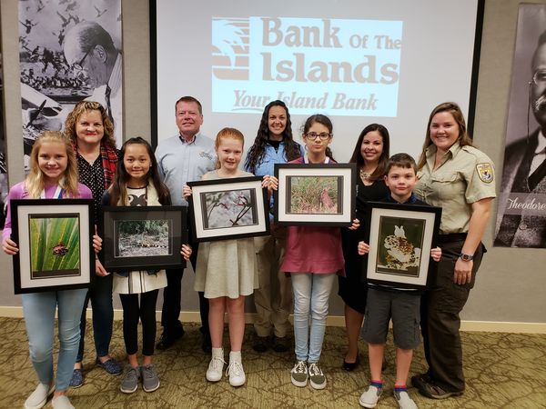 Ranger Monica Scroggin emceed the event to showcase all the students’ artwork at the Visitor and Education Center. Bank of the Islands Vice Presidents Willy Ocasio and Rob Lisenbee presented award medals and $100, $75 and $50 cashier’s checks, respectively, to the top three youth photographers.