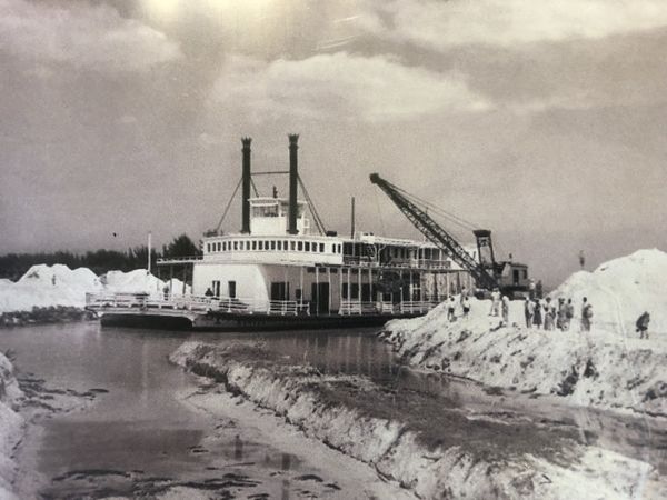 It was floated ashore via a trench dug on the beach that is presently Gulfside City Park.