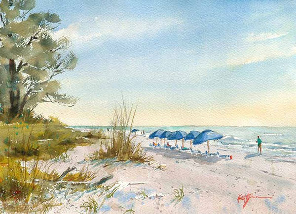 Keith Johnson was a professional photographer in Minnesota and also pursued his love of watercolor painting. Since moving to Florida, he has been painting mostly in plein air, and his paintings have won awards. Johnson paints in a loosely realistic style, which captures the essence of the scene without being overly detailed. Among his favorite subjects are the beaches of Sanibel and Captiva.