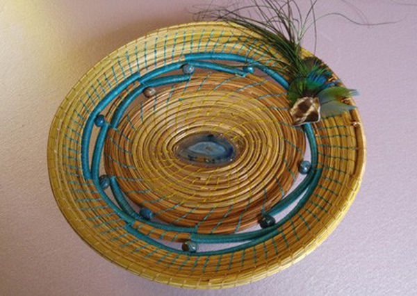 Sandy O’Grady began her artistic journey only a few years ago, but her talent at creating pine needle basketry is evident. She embellishes her creations with natural objects such as shells, feathers, plant parts and pinecones, and she also creates her own pottery bases for some of her baskets. O’Grady is always experimenting with new techniques and ideas, and has extended her artwork to include pine needle wall hangings and carved and decorated gourds.
