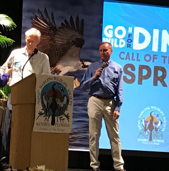 From the moment guests walked into the sold-out Call of the Osprey 2019 Go Wild for “Ding” event on Feb. 13, it was clear the guests were there for the love of J.N. “Ding” Darling National Wildlife Refuge and all things wild. Sounds of osprey calls, “juvenile ospreys” flying around the room and the overall sense of being surrounded by all those who appreciate the refuge got guests in the mood to bid often and high on the silent and live auction items and to ultimately “give to give.”