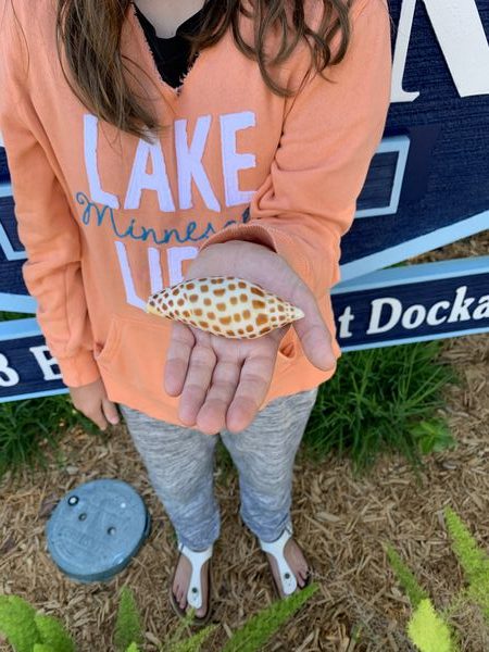Maddie Schmitt, 9, of Mendham, New Jersey, found a junonia on Dec. 25 between the Sanibel Lighthouse and the Sanibel Moorings during a morning walk with her mother, Erika, and 12-year-old brother, Sam. Her mother reported that the family was unsure at first of what Maddie had found, with her daughter commenting, “It’s either a flamingo’s tongue or an actual junonia, mom!” Schmitt continued that she, her husband and children were spending the Christmas holiday with extended family at the Moorings for the week. She added that she used to visit Sanibel annually as a child with her parents 30-plus years ago. The family would come from Minnesota for a week to visit Schmitt’s grandparents, who spent the winter on Sanibel for a week. She noted that the family hopes to continue the tradition of visiting the islands in some way.