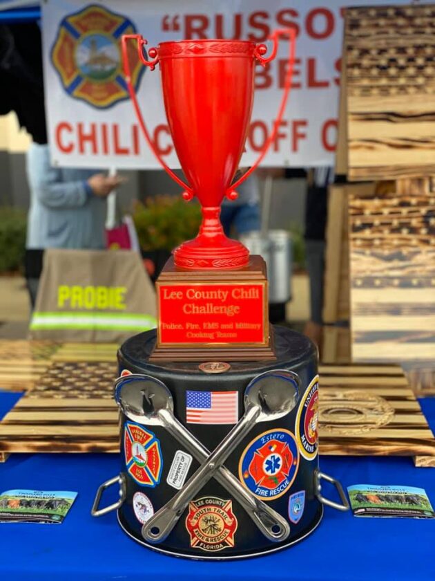 The teams will provide chili samples in the hopes of unseating the 2020 champion, the Fort Myers Fire Department — the event was not held last year — with the honor of acquiring and displaying the challenge’s traveling trophy. A team from Sanibel fire district won the first challenge, and at the second event the People’s Choice Award was added and earned by the South Trail district.