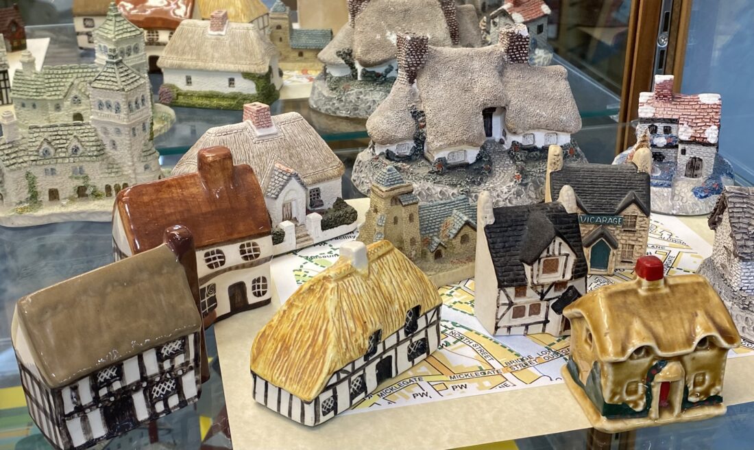 During May, swing by the library to see a collection of tiny folk art, souvenir and antique miniature homes collected by Jean Klein. Look in the display case on the east side, near the glass elevator. If you have a unique and interesting collection that you would like to share, contact the library.