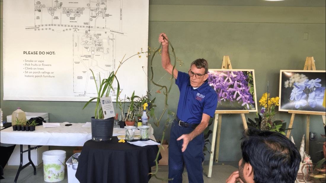 Robert Riefer, of the University of Florida’s Institute of Food and Agricultural Sciences, presented rare Florida native orchids to Edison and Ford Winter Estates Chief Executive Officer Mike Flanders.