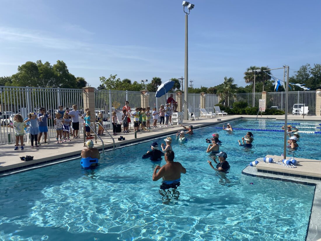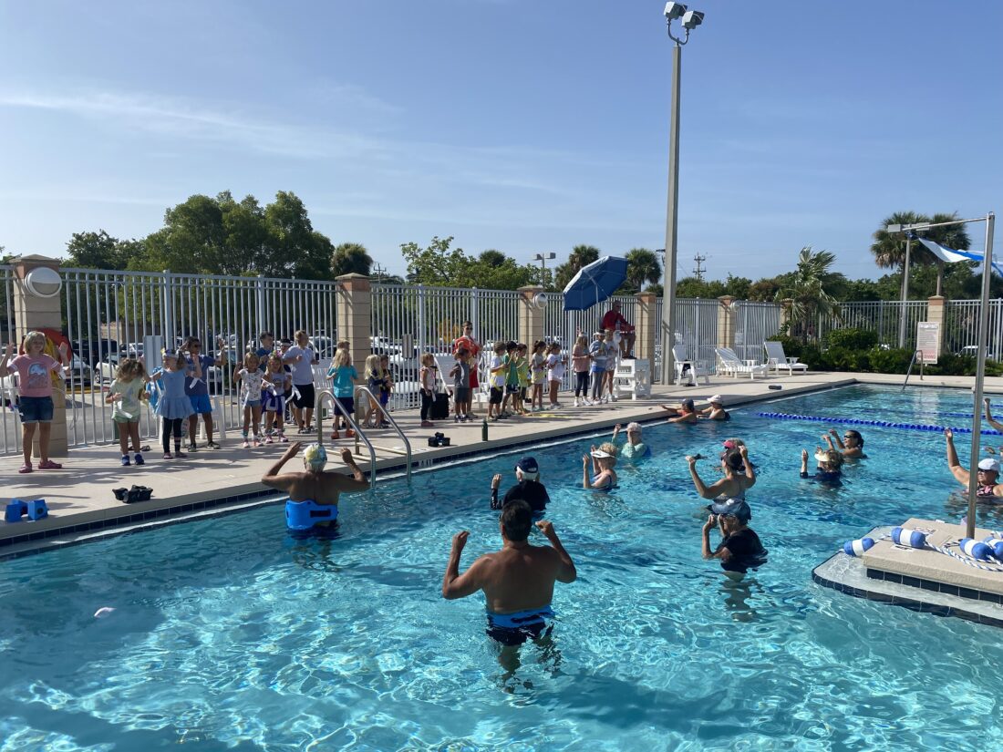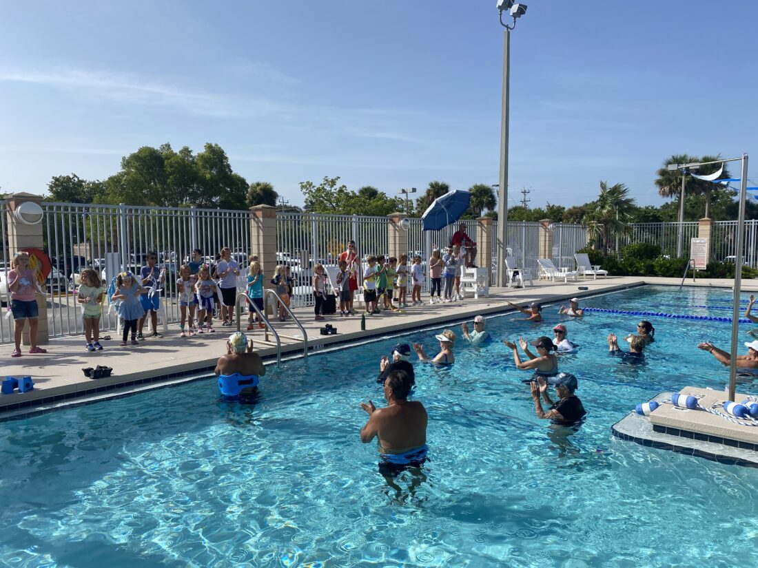 Participants in the Sanibel Recreation Center’s Youth Fun Day Program performed the Chicken Dance on Aug. 9 during the Deep Water Exercise Class. The children were dressed up in streamers and feathers, and the water class participants joined in on the fun.