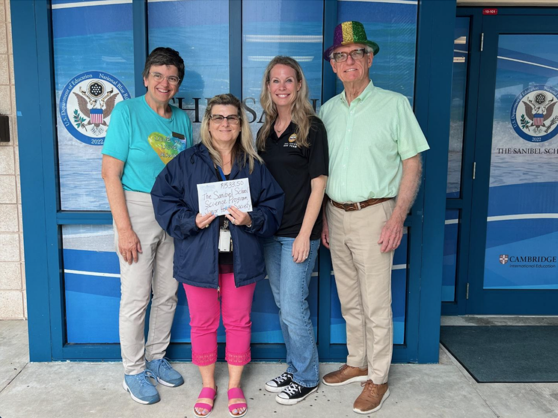 From left, Saint Michael and All Angels Episcopal Church Director of Community Engagement Sue Van Oss, The Sanibel School Principal Jennifer Lusk, middle school science teacher and National Junior Honor Society school advisor Michele Mitnitsky and church Pancake Supper Chair Bill Larson.