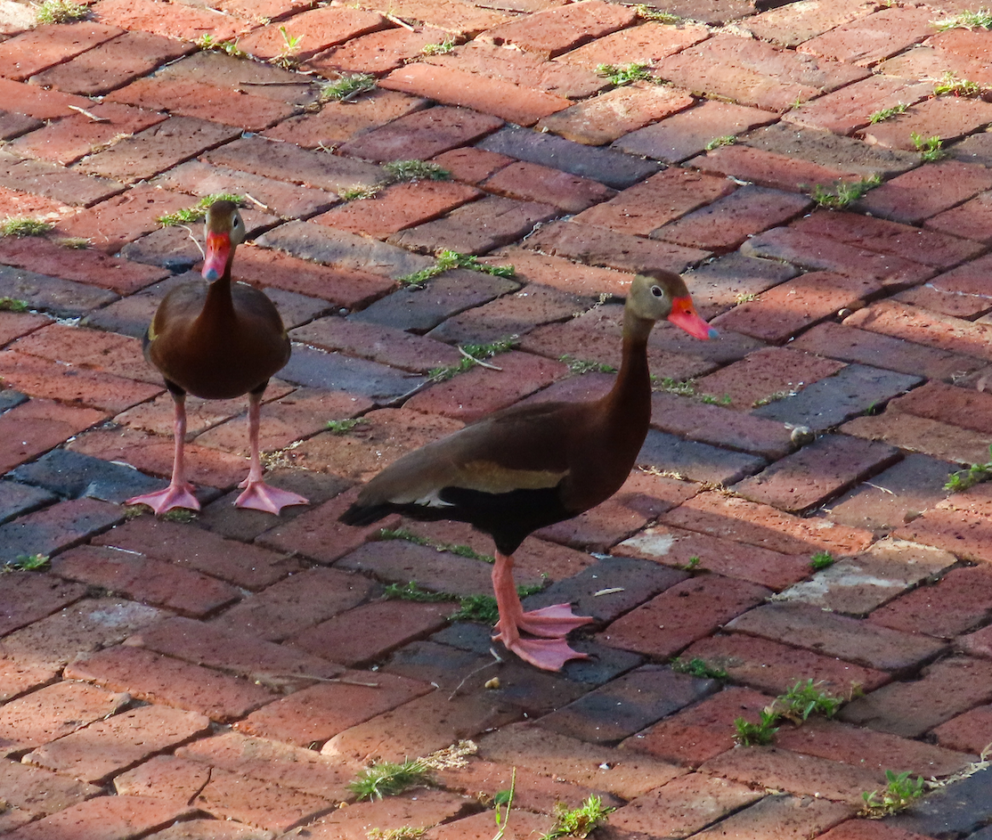 The other fascinating aspect of this bird is that it’s very gregarious. I have a pair nesting near me, and they have virtually no flight response when you approach them. To put it in simple terms, as wild birds they are extremely friendly. They are presently thriving in urban, suburban and exurban settings, not unlike the ungainly Muscovy ducks that can be found throughout Lee County and Southwest Florida. Unlike most ducks, whistling ducks mate for life and prefer to nest in tree hollows or dead palm trees.