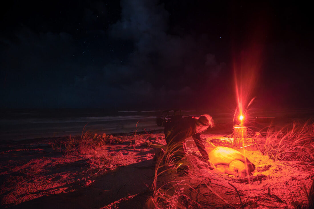 From May 1 through July 31, the team conducts nightly beach patrols on Sanibel to intercept, tag and identify, and monitor nesting sea turtles.