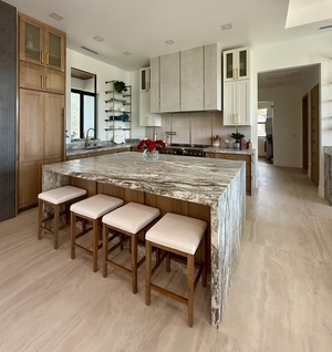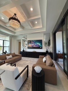 – Dixie Beach Dream: The resilient, brand-new home was completed in just five months. As Peekers walk through the masterpiece, they will be amazed at all the high-end touches that were procured on an “as-needed” basis. With very little lead time, the owners created a home that is beautifully appointed and extremely functional. While it is a concrete building and designed to withstand the worst weather, it also conveys the inviting warmth of an island retreat.
