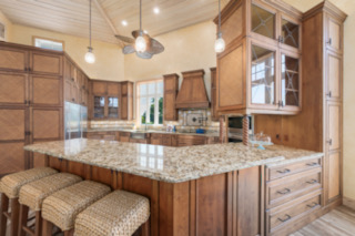 – Dinkins Bay: A grand sense of arrival will greet Peekers as they enter the home, designed by acclaimed architect Joseph St. Cyr, with its expansive foyer and elegant open stairway. Sunlight pours in, enriching the wood-beamed ceilings and red oak floors, and leading to an open-layout kitchen with custom cabinetry, granite surfaces and top-tier built-ins. From the multi-level screened lanai, take in the panoramic views of the landscaping, pool, spa and waterfront. From the top deck, glimpse the Gulf.