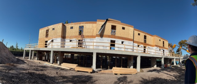 “We are working the third-floor walls and the second-floor elevator shaft,” Benchmark General Contractors Senior Superintendent James Cassen shared. “Over the next few months, we will be setting the trusses on the roof, drying the building in, building out the interior framing of the units, starting the plumbing, electrical and mechanical roughs in the building, and setting the doors and windows.”