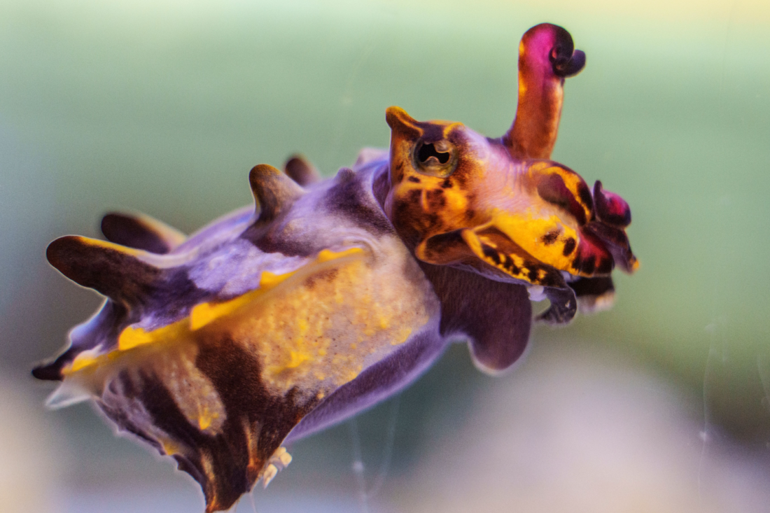 – Flamboyant cuttlefish: The flamboyant cuttlefish is a small, visually striking and poisonous species found in warm Indo-Pacific waters. They are known for their vibrant colors and unique walking behaviors along the seafloor using lower arms and fins. They use their dynamic colors for camouflage, mating displays, defense and communication.