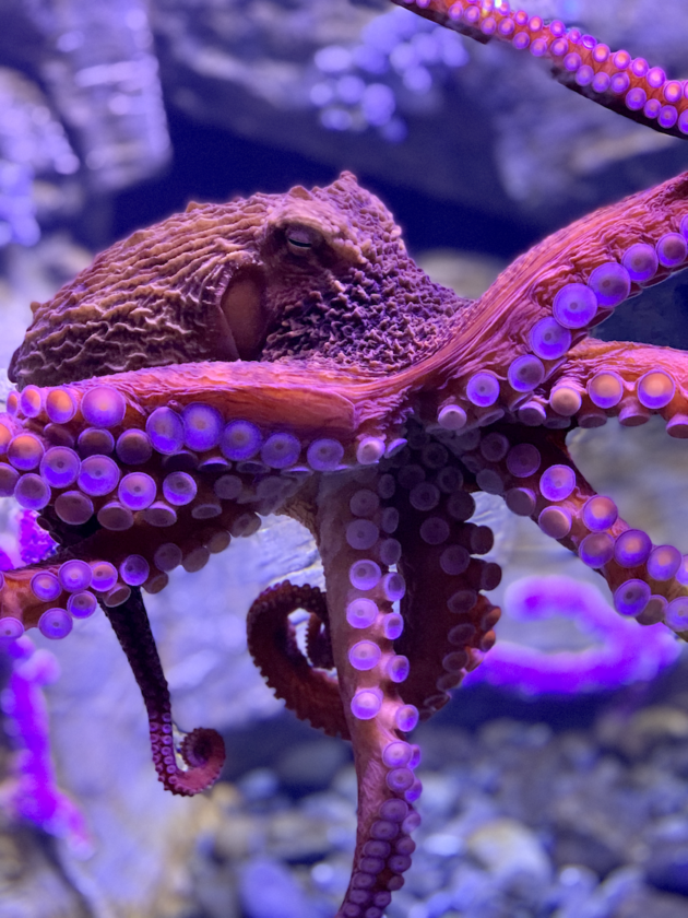 Perhaps the most popular animal on view is the playful giant Pacific octopus, which was welcomed in October. The largest species of octopus in the world, it has eight arms, three hearts, blue blood and weighs an average of 90 pounds. They are extremely intelligent and receive extensive daily enrichment from museum aquarists to encourage that species’ appropriate behavior.