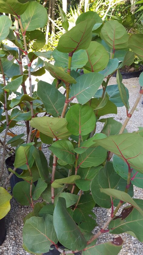Seagrape (Coccolabil unifera) is a member of the buckwheat family, as odd as that sounds. To us, it’s a stalwart native shrub with evergreen leathery leaves, fragrant flowers and edible fruit that do resemble grapes. The native species is found throughout South Florida and plays a very important role in the ecosystems that it resides in.