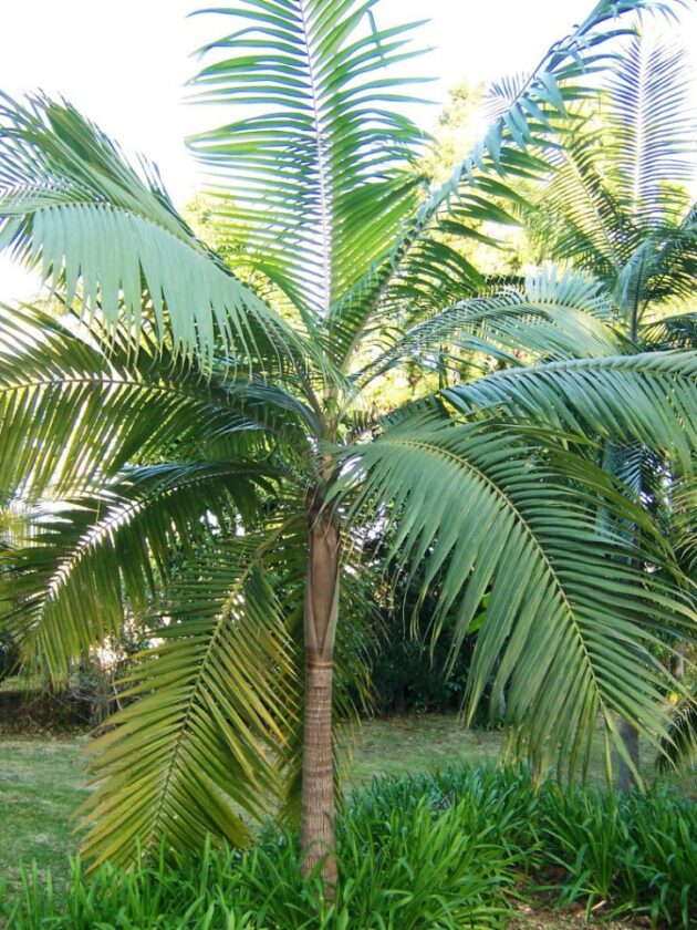 The palm is a self-cleaning palm, so you will not need to trim off brown fronds; it will do the job for you. The palms seem to do very well in South Florida as they are salt tolerant and like full sun. They do not seem to be prone to micro-nutrient deficiencies and are generally a hardy palm. Whether you like it for its beauty or its strength, this palm would be a great choice for an island landscape.