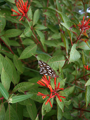 Firebush (Hamelia patens) is a wonderfully cooperative and colorful native to brighten your garden. Gardeners love firebush because it produces flowers consistently year-round in our South Florida area. Its bright red tubular flowers attract hummingbirds and butterflies, including the zebra longwing and Gulf fritillary butterflies, and birds love the berries. With its airy appearance and shape, it makes a good anchor planting in any butterfly or wildlife garden.