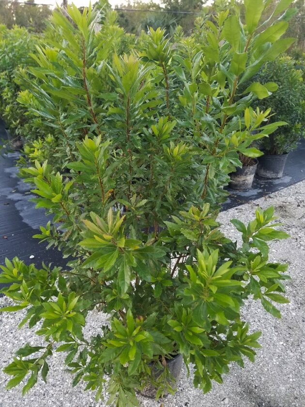 Wax myrtle (Myrica cerifera) is a native plant that can take whatever conditions our islands can dish out. This variety of Myrica is found mainly in the southeastern United States. It thrives in the heat or the cold, is salt tolerant and can do well in sandy dry conditions as well as in wet areas.